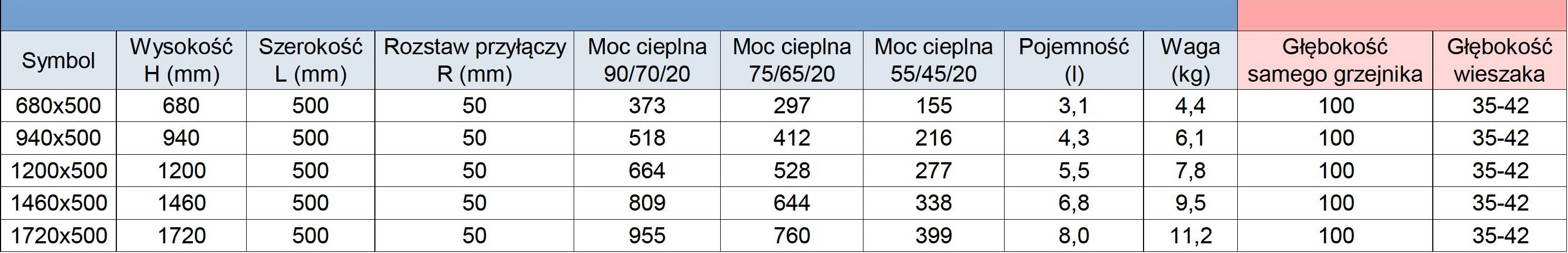 - Moc 55/45/20 ℃ (W) – piece gazowe niskotemperaturowe, pompy ciepła