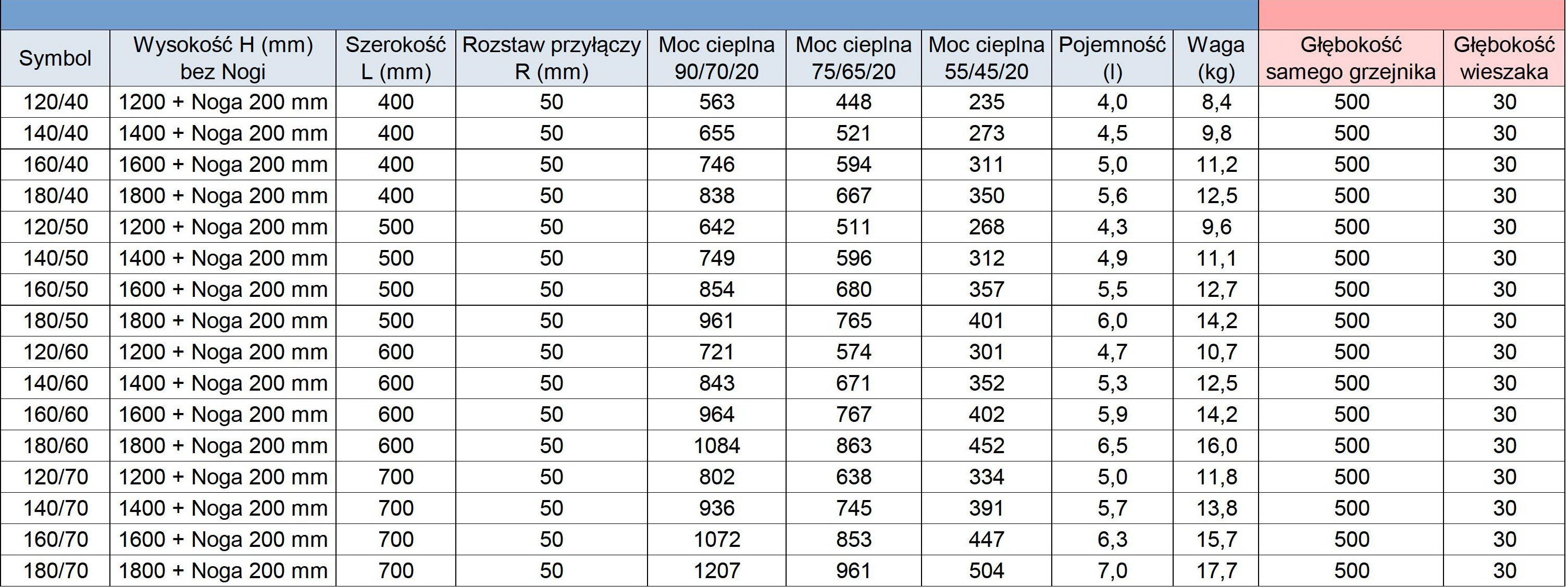 - Moc 55/45/20 ℃ (W) – piece gazowe niskotemperaturowe.