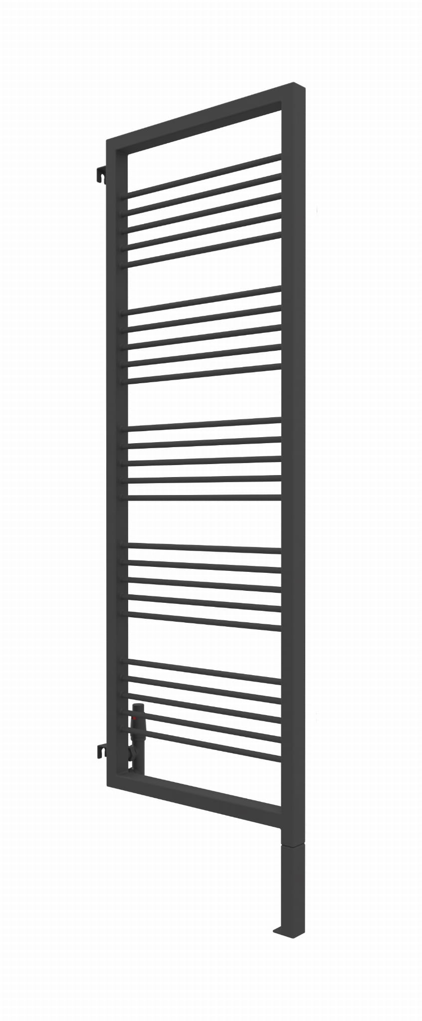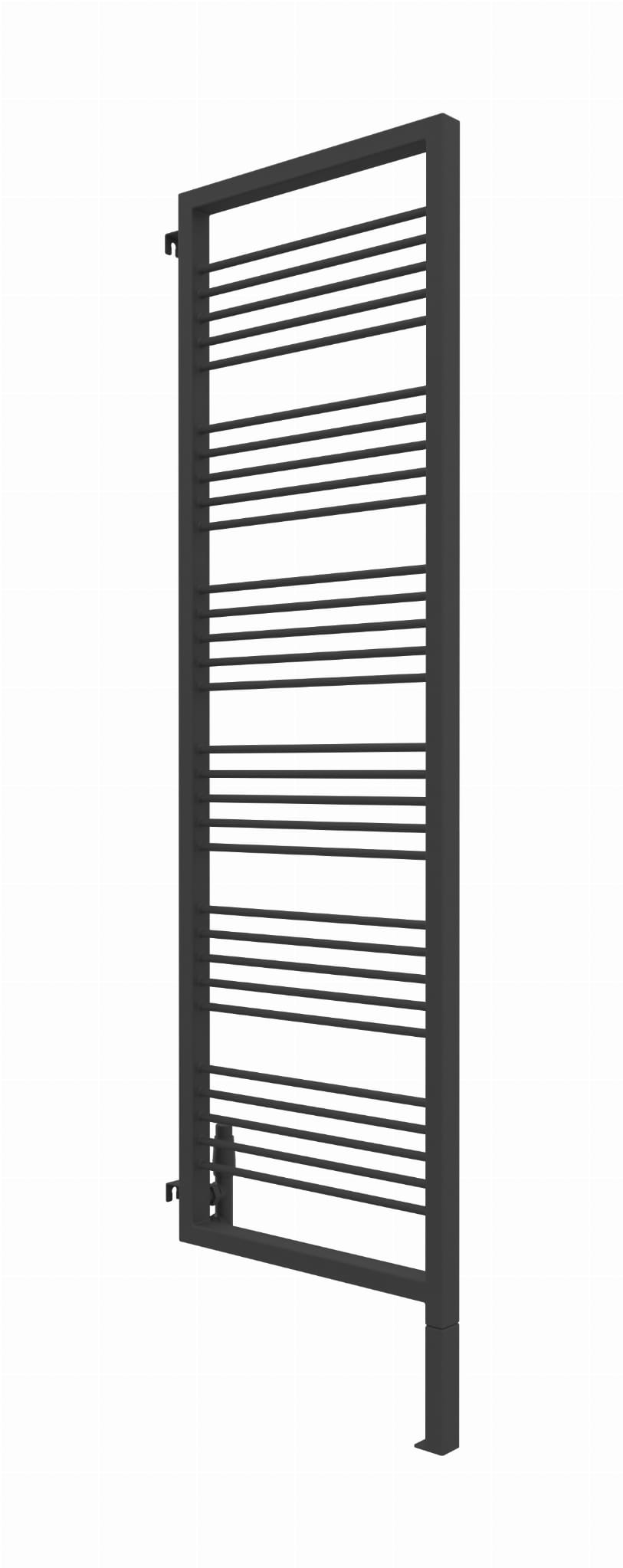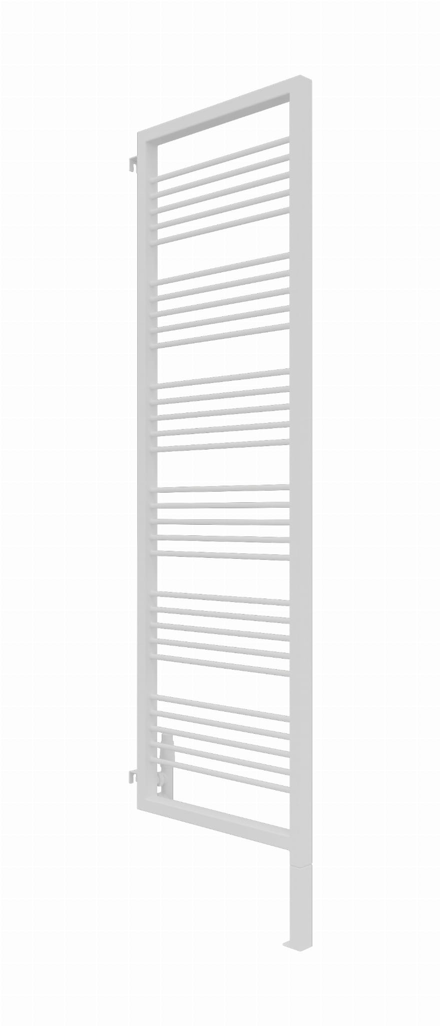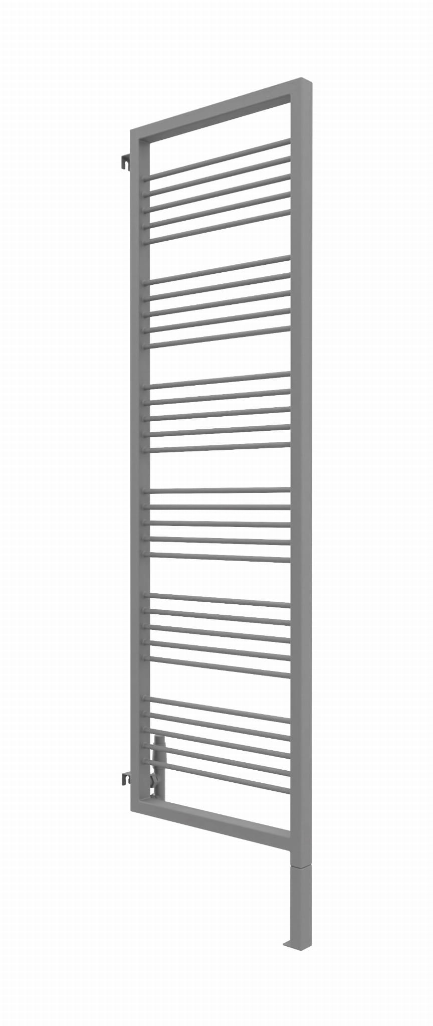 Grzejnik wyposażony jest w zintegrowaną, wspawaną nogę, która stanowi jego integralną część konstrukcyjną. W przypadku modelu o całkowitej wysokości 180 cm, należy uwzględnić, że trzeba doliczyć 20 cm na stałą, dolną nogę, natomiast wysokość samego elementu grzewczego wynosi 180 cm.