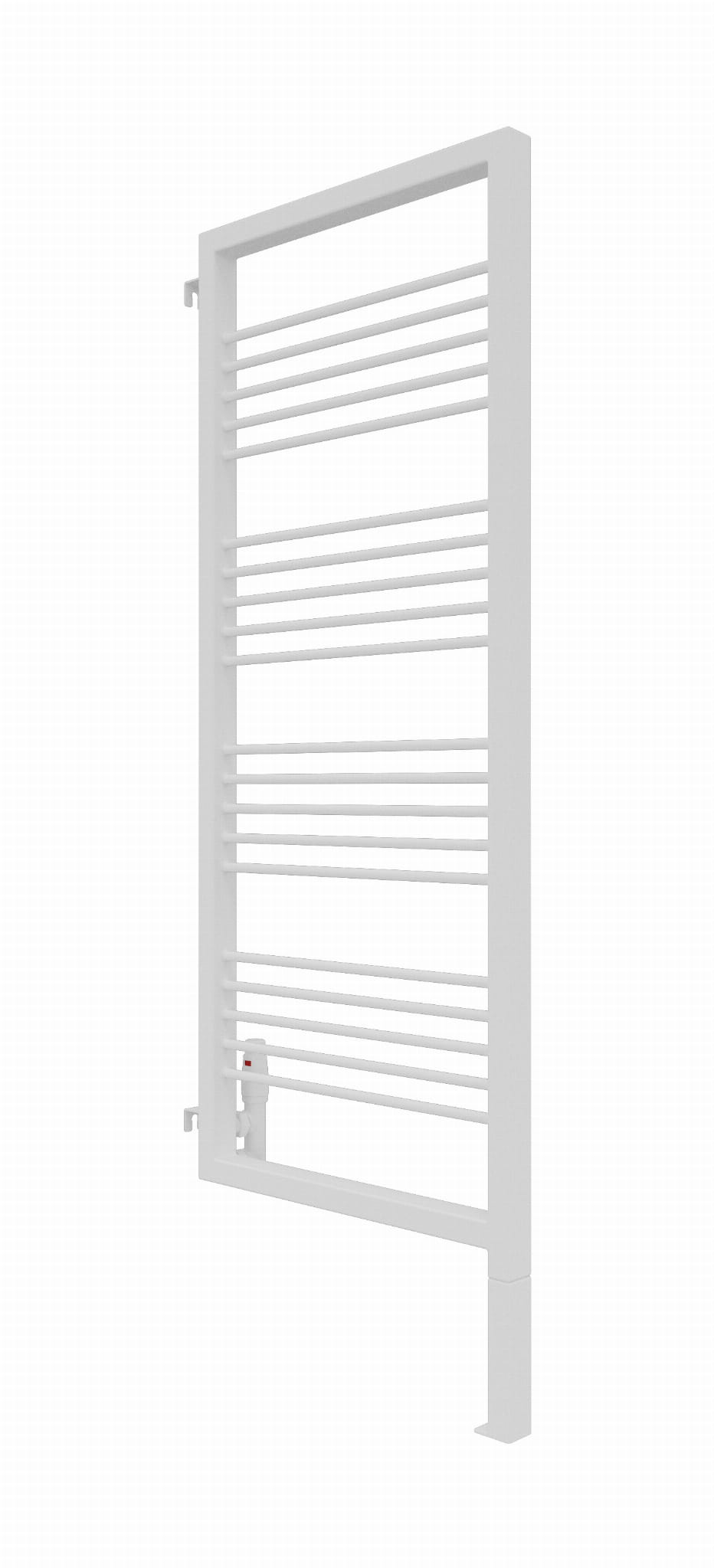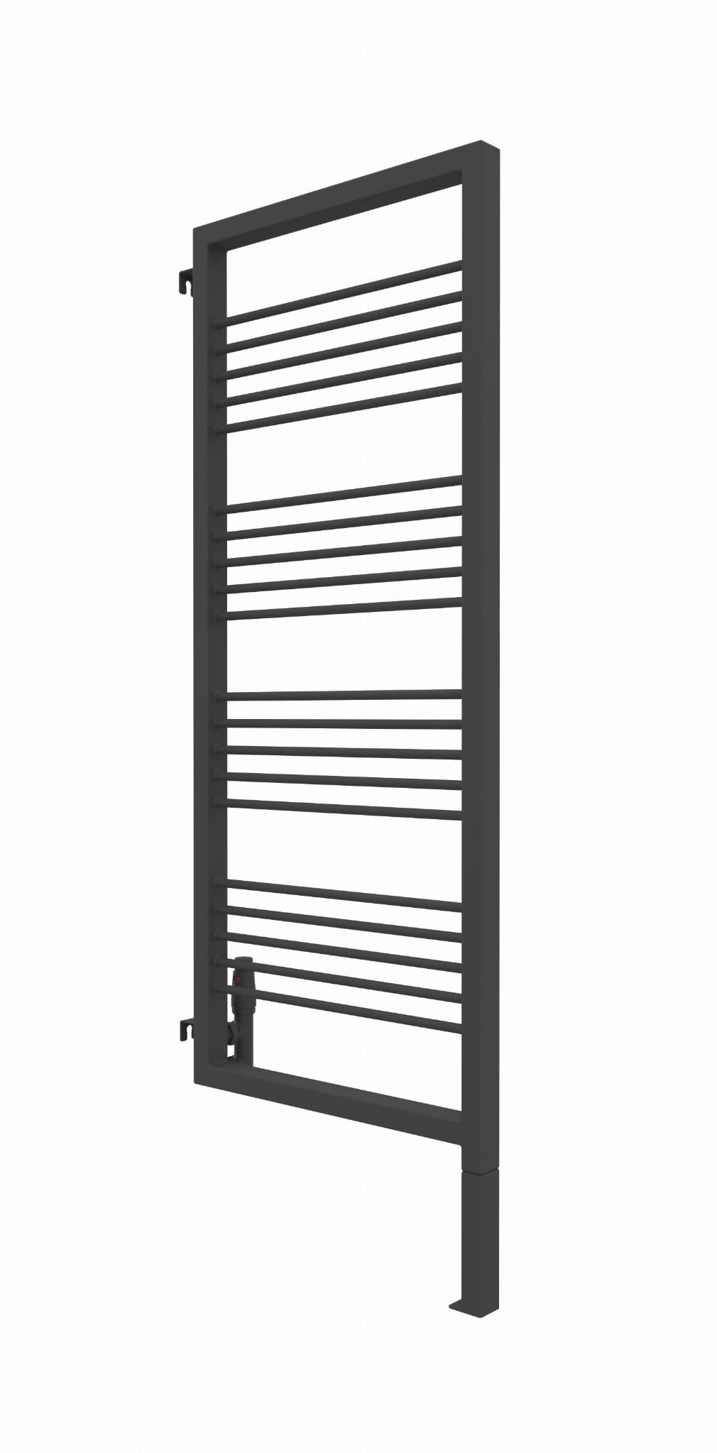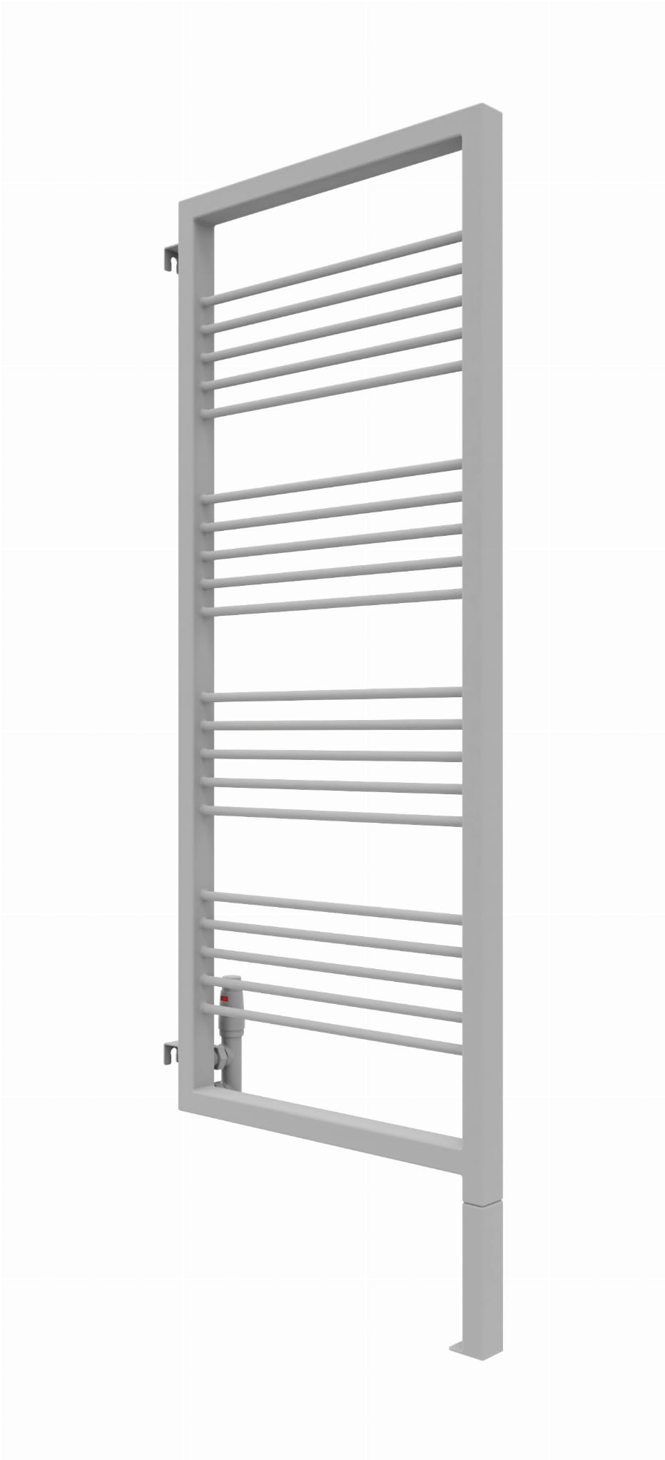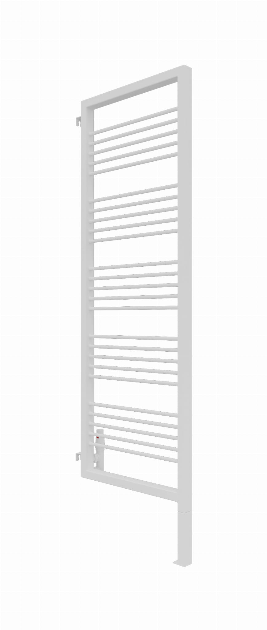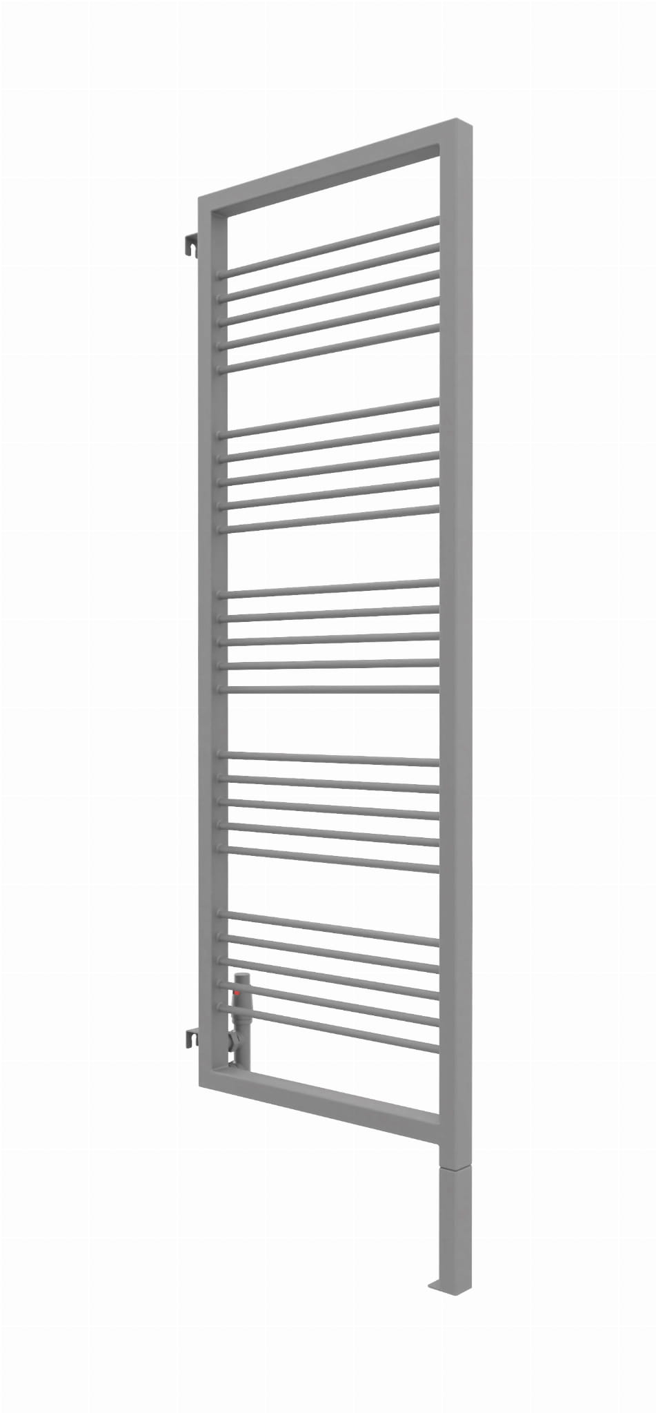 Grzejnik wyposażony jest w zintegrowaną, wspawaną nogę, która stanowi jego integralną część konstrukcyjną. W przypadku modelu o całkowitej wysokości 180 cm, należy uwzględnić, że trzeba doliczyć 20 cm na stałą, dolną nogę, natomiast wysokość samego elementu grzewczego wynosi 180 cm.