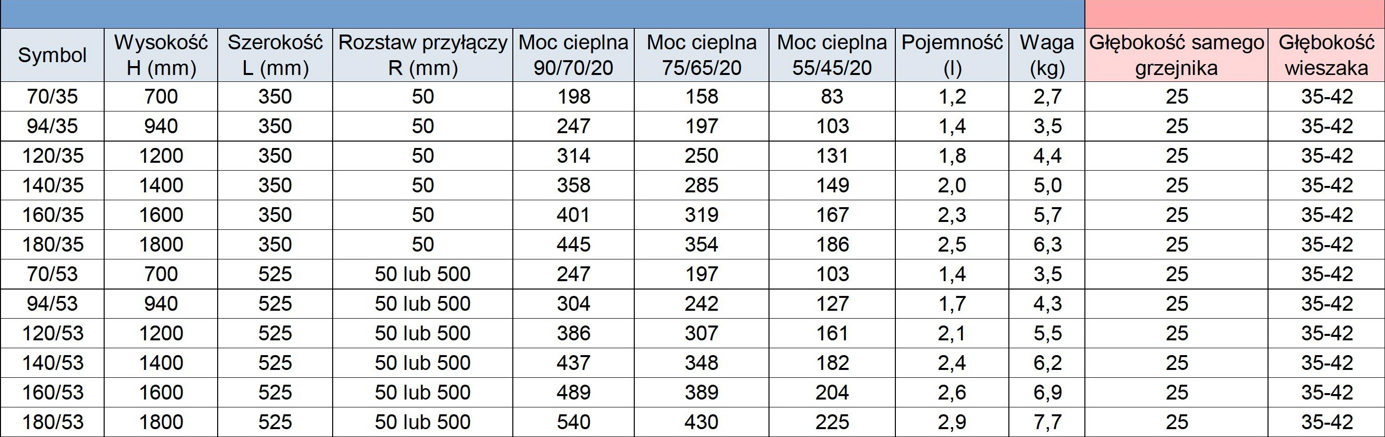 - Moc 55/45/20 ºC (W) – piece gazowe niskotemperaturowe, pompy ciepła
