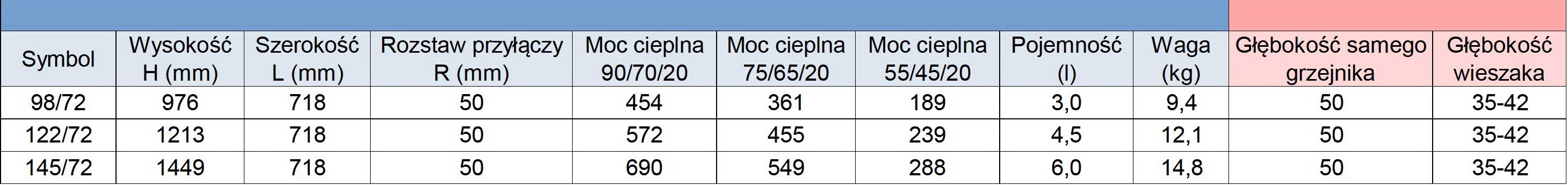 - Moc 55/45/20 ℃ (W) – piece gazowe niskotemperaturowe.