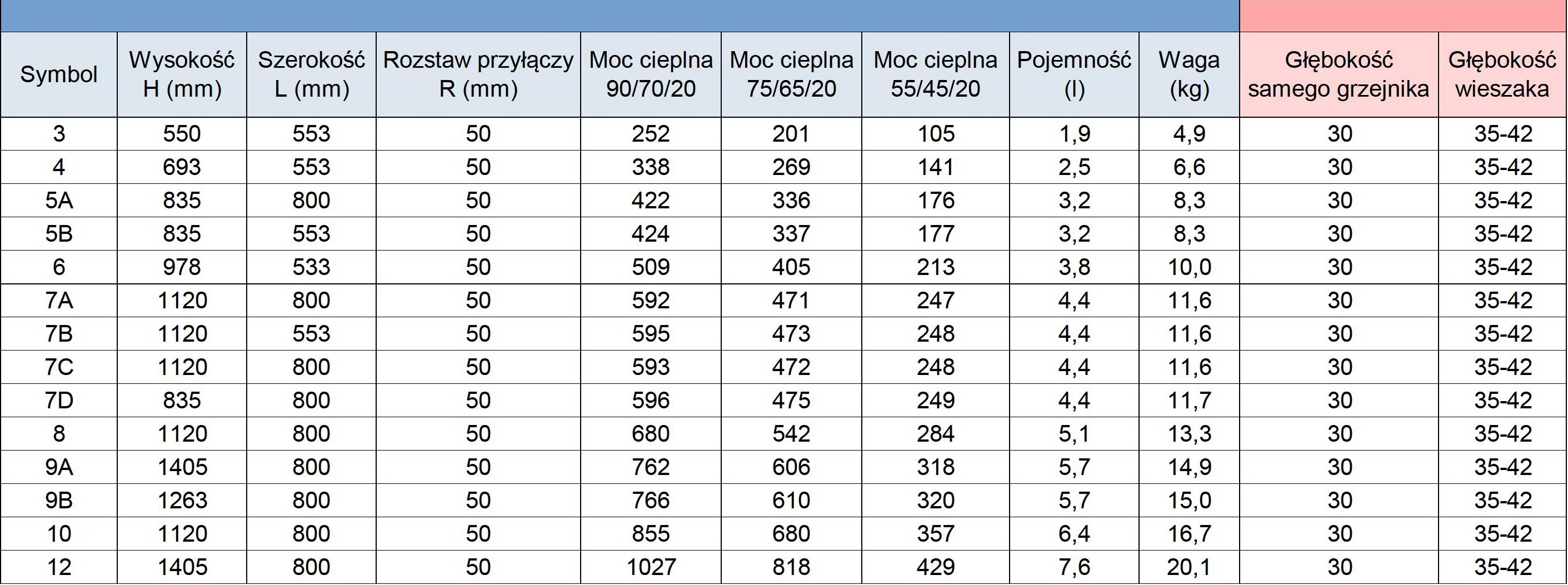 | Moc 55/45/20 oC (W) – piece gazowe niskotemperaturowe. | 176 W |