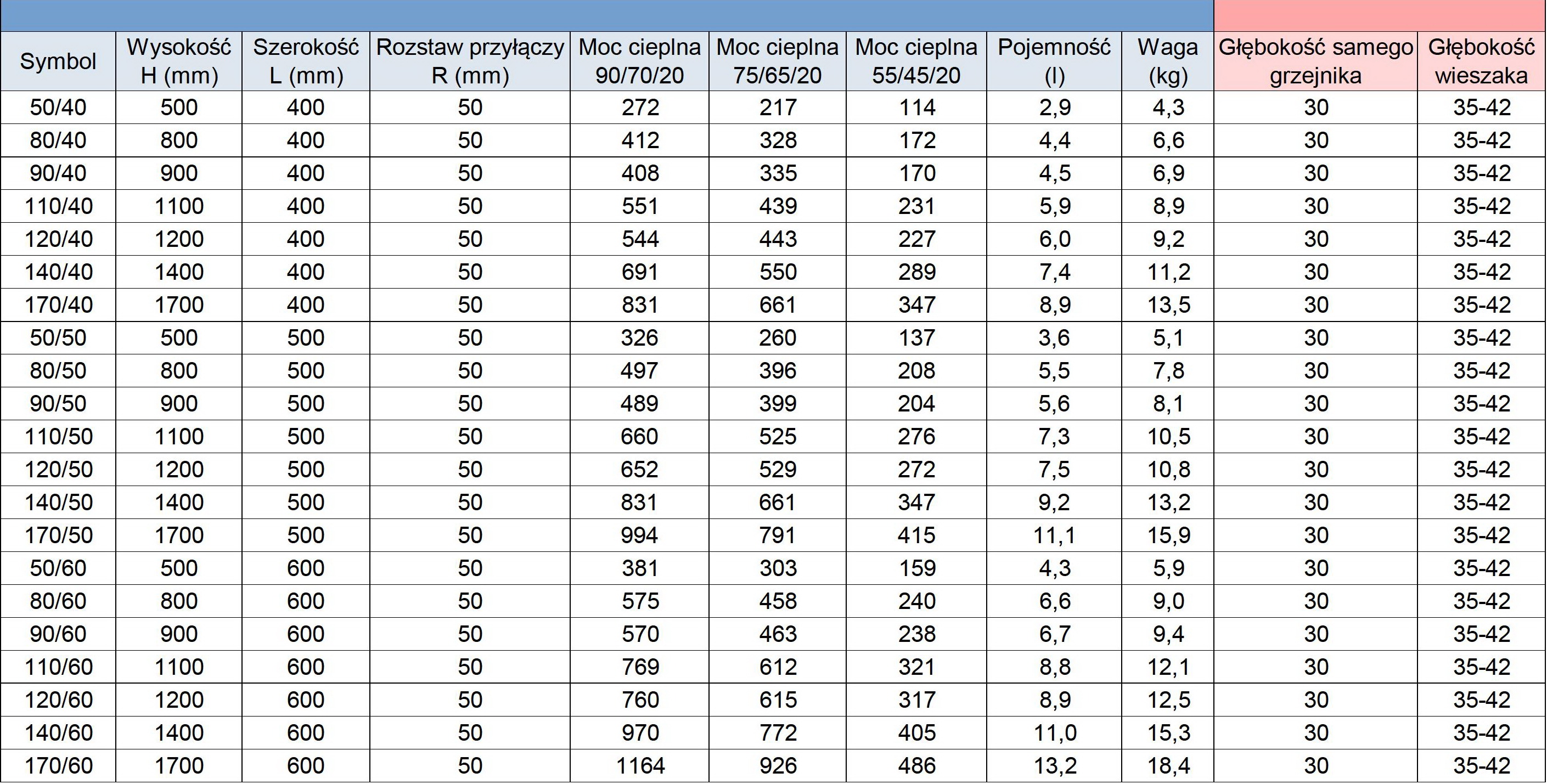 - Moc 55/45/20 ºC (W) – piece gazowe niskotemperaturowe, pompy ciepła