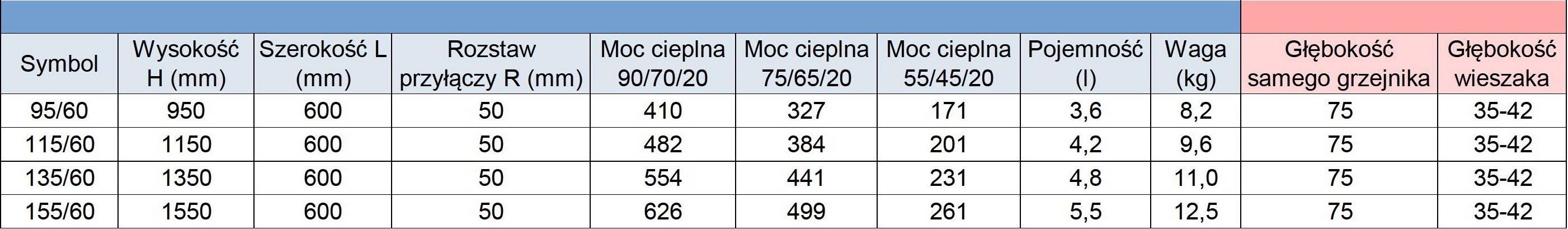 - Moc 55/45/20 ºC (W) – piece gazowe niskotemperaturowe, pompy ciepła