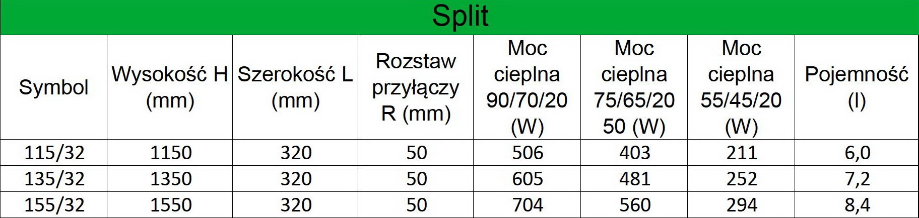 - Moc 55/45/20 oC (W) – piece gazowe niskotemperaturowe.