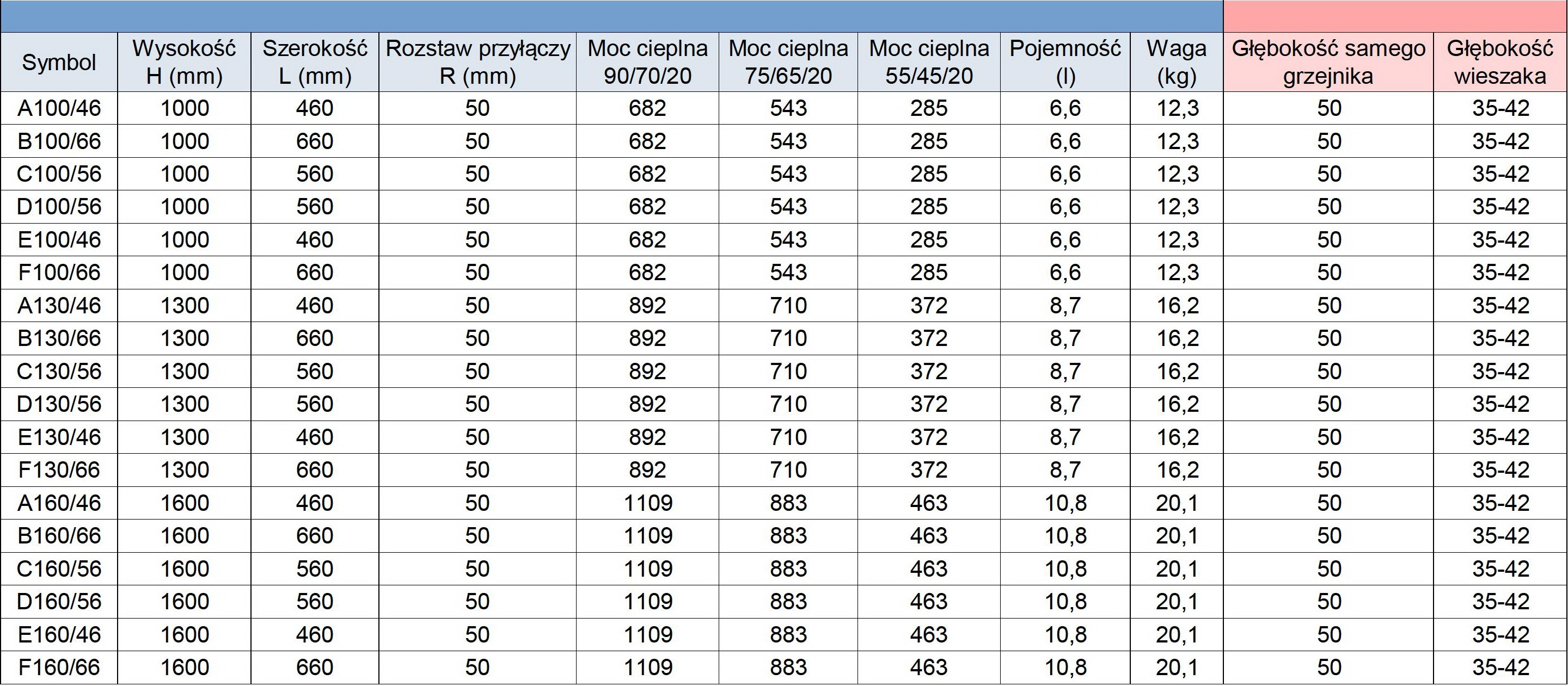 - Moc 55/45/20 ℃ (W) – piece gazowe niskotemperaturowe.