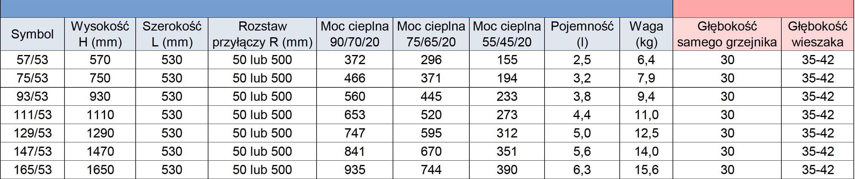 - Moc 55/45/20 ºC (W) – piece gazowe niskotemperaturowe, pompy ciepła