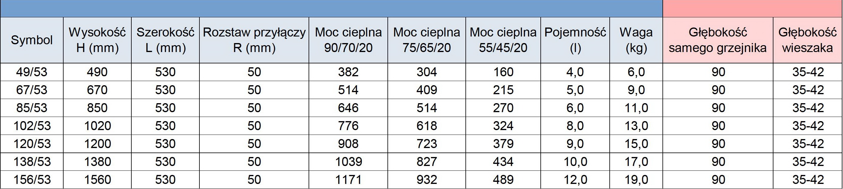 - Moc 55/45/20 ℃ (W) – piece gazowe niskotemperaturowe.