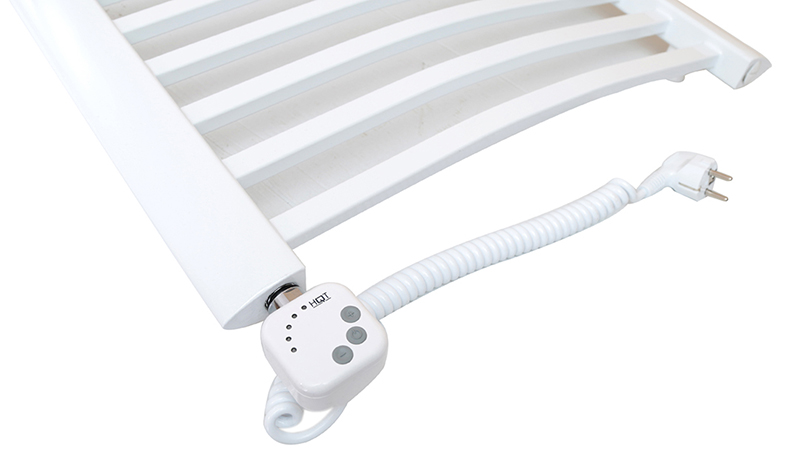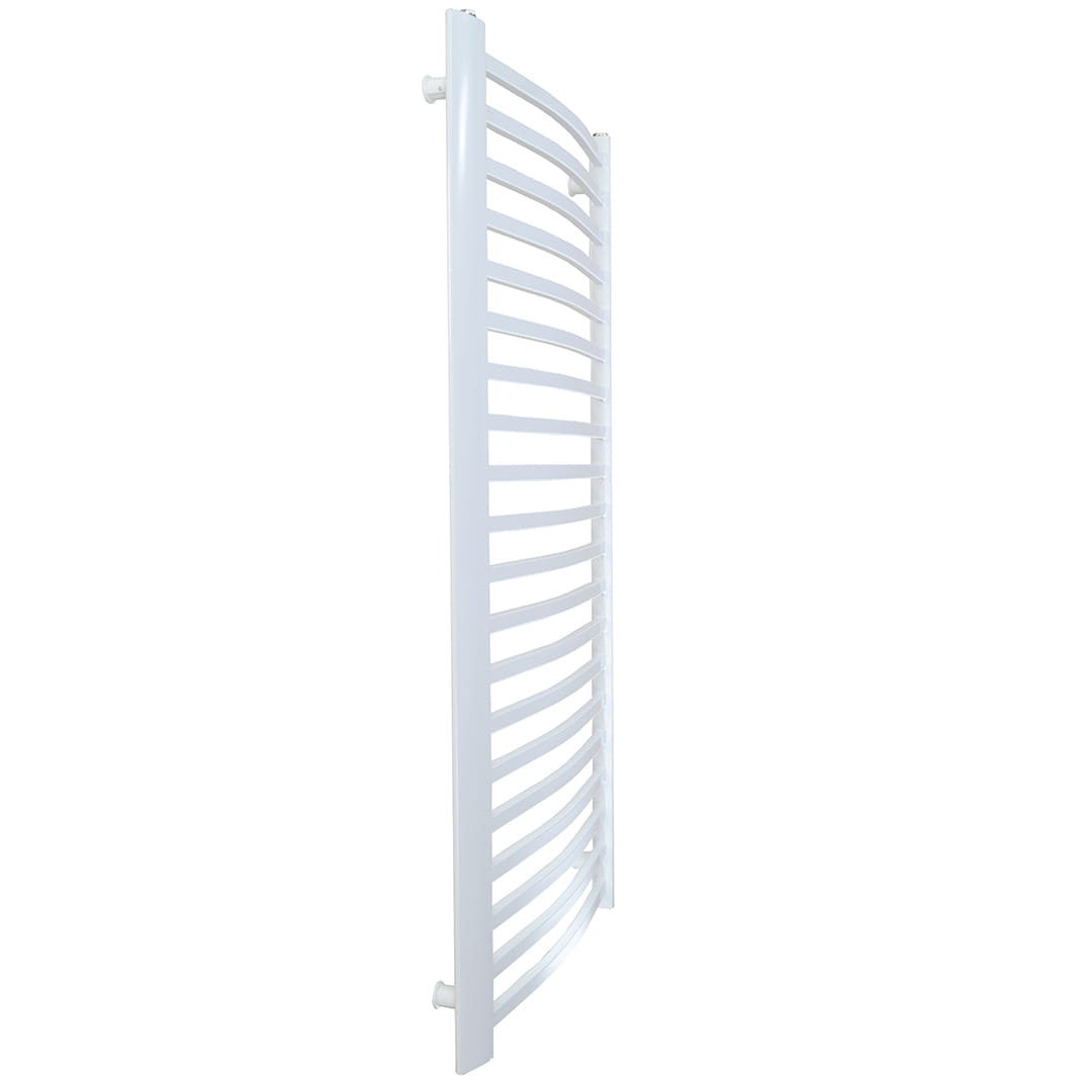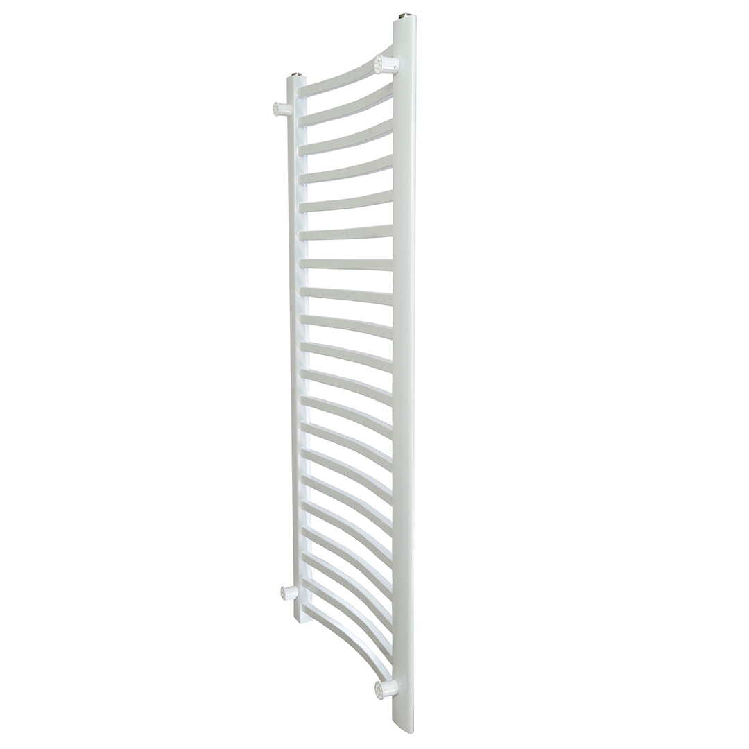 Nowoczesny grzejnik drabinkowy w kolorze białym. Mały rozmiar grzejnika idealny do podłączenia grzałki elektrycznej. Kaloryfer może pracować jako wodny (podłączony do instalacji C.O.) lub jako elektryczny po zalaniu i zamontowaniu grzałki.