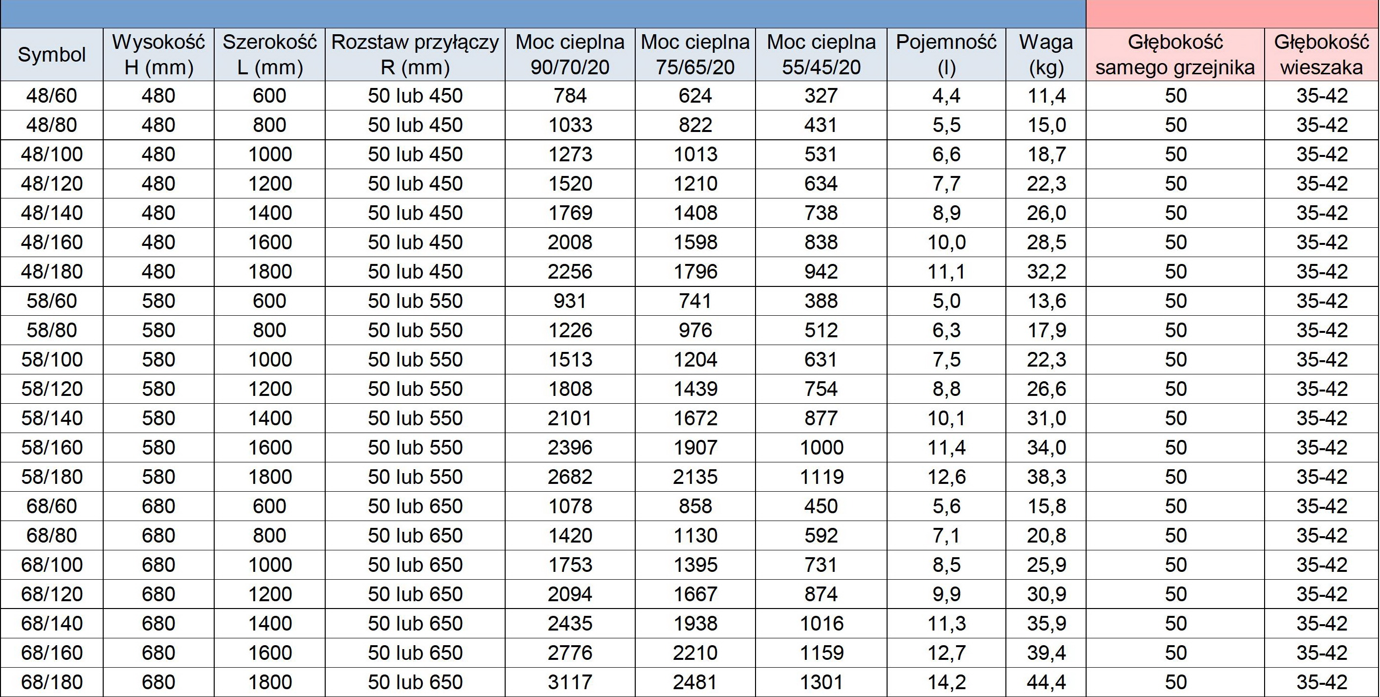 - Moc 55/45/20 ℃ (W) – piece gazowe niskotemperaturowe.